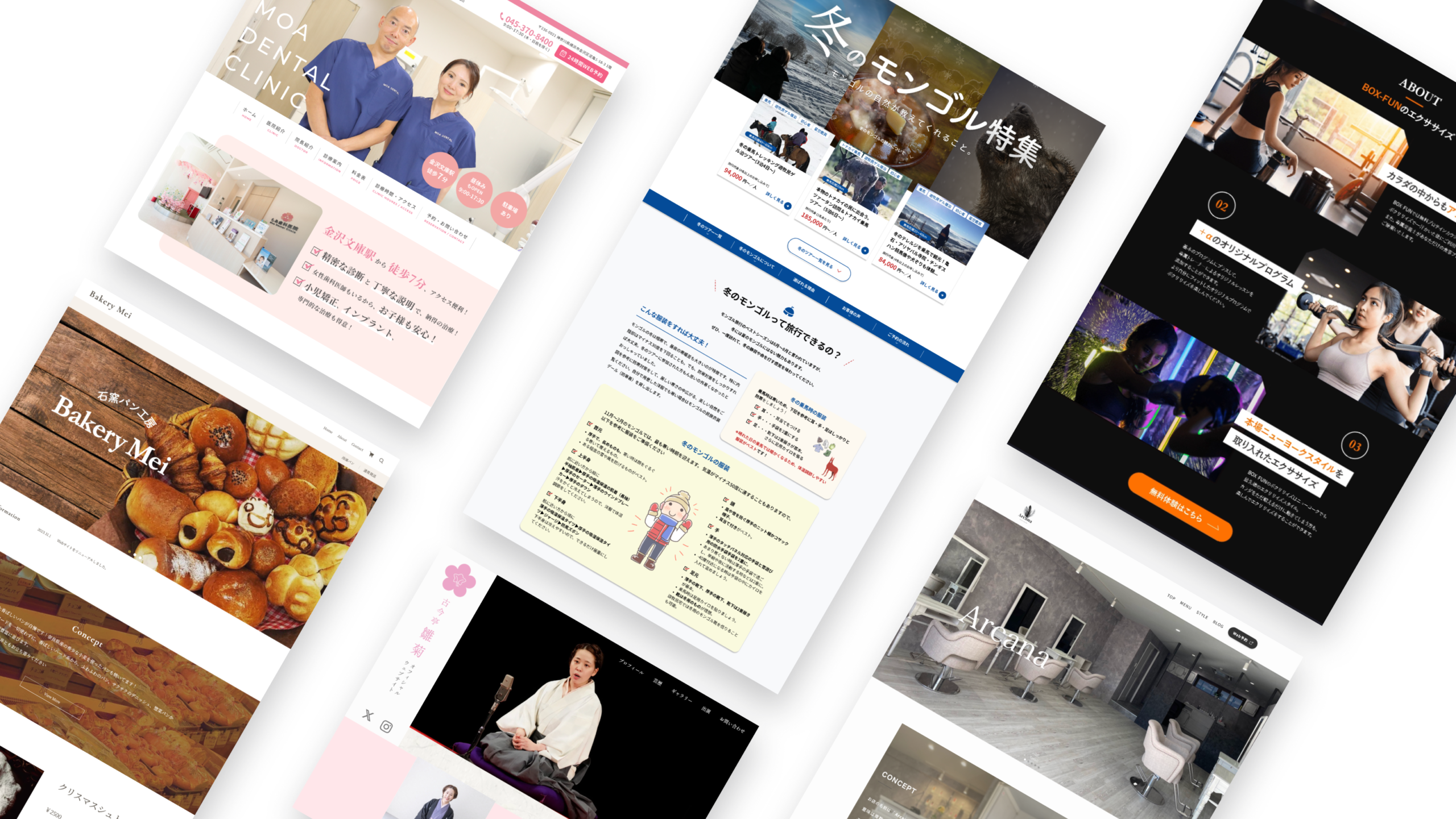 歯科医院、美容室、建設業、パン屋など、これまでに多様な業種のホームページを手掛けてきました。業界ごとの特性やお客様が求める情報を深く理解し、それに合ったデザインや構成を提案します。